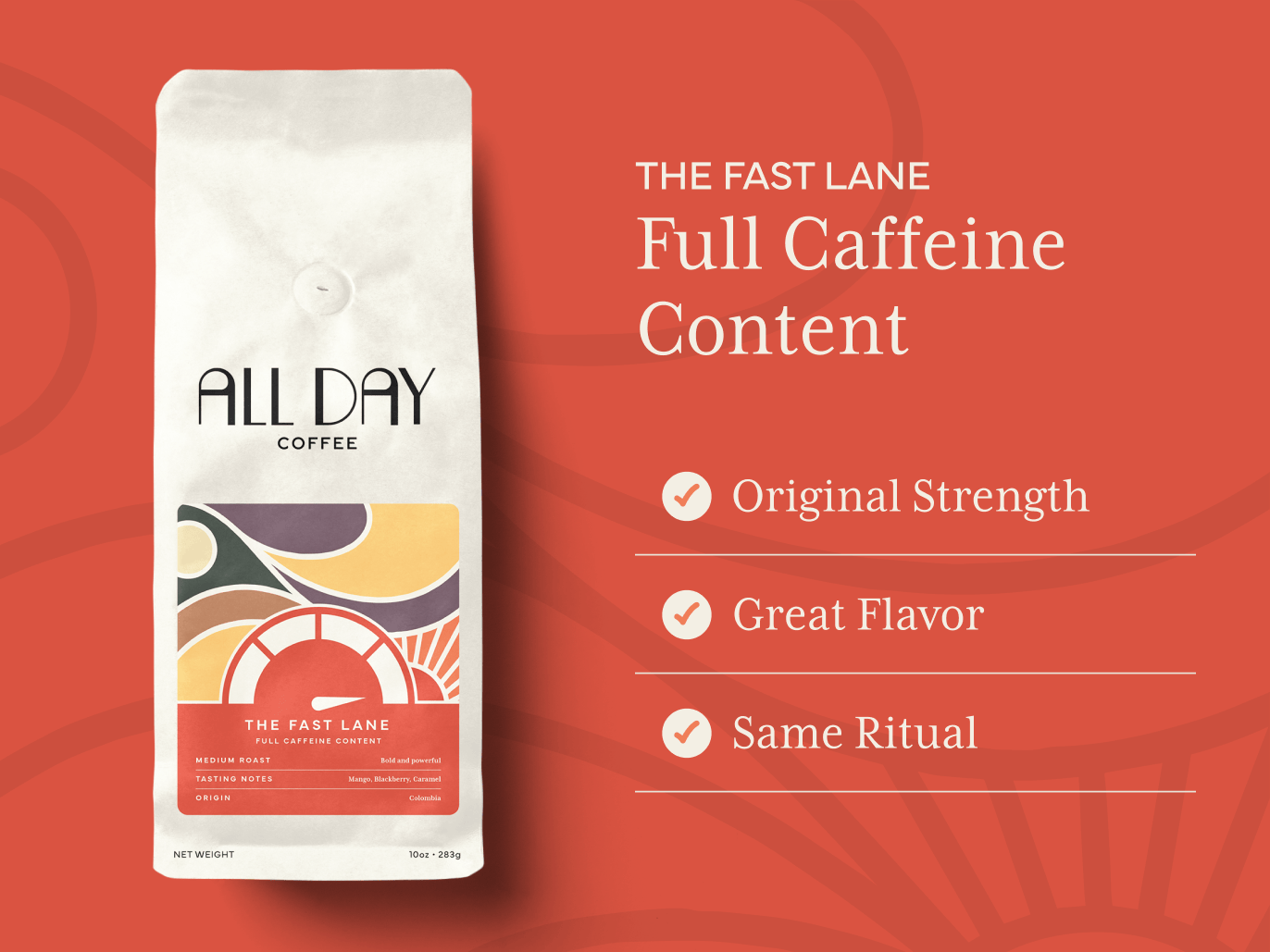 Caffeine commitment issues? Same. I love the taste of specialty coffee but my nervous system? Not so much. Enter All Day. This isn't your average half caf. Even brewed in a basic drip machine, it tastes like a fancy pour-over someone in a linen apron made for you. Bright, fruity notes, smooth finish, no jitters - only jazz hands. It's like having your (coffee) cake and